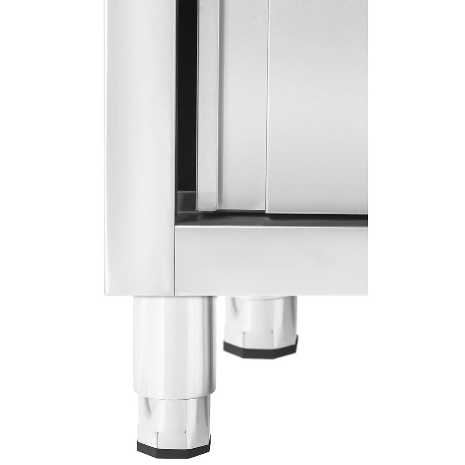 Pod zlewem znajduje się przestronna szafka z przesuwnymi drzwiami, która pomieści niezbędne narzędzia kuchenne. Dodatkowo, nóżki z regulacją wysokości o 20 mm pozwalają na dostosowanie stabilności zlewu.