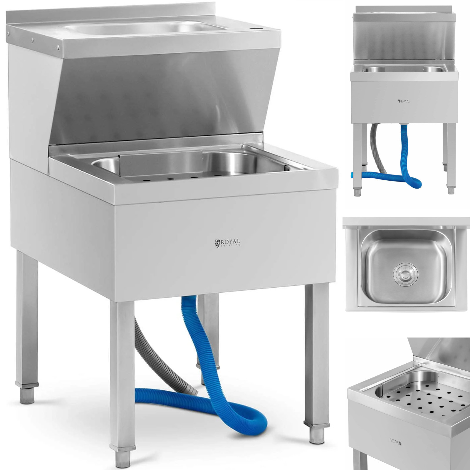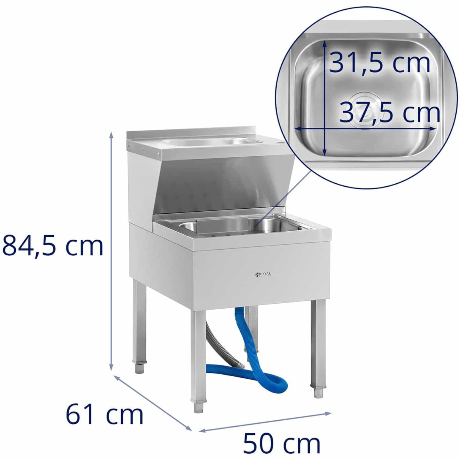 Zlew porządkowy do mopa z umywalką 61 x 50 x 84.5 cm to praktyczne rozwiązanie, które ułatwi codzienną pracę w kuchni. Dzięki kompaktowym wymiarom, zlew idealnie wpasuje się w każdą przestrzeń z przyłączem wody i odpływem. Umożliwia wstępne czyszczenie naczyń przed ich umyciem w zmywarce lub szybkie mycie ręczne. Zlew składa się z dwóch komór: górnej o wymiarach 33 x 23 x 12 cm z pojemnością 5,9 litra oraz dolnej o wymiarach 37,5 x 31,5 x 17 cm i pojemności 15 litrów. Taka konstrukcja pozwala na efektywne opróżnianie i opłukiwanie naczyń. Dodatkowo, rant w górnej umywalce chroni ścianę przed zabrudzeniami. Zlew wykonany jest ze stali nierdzewnej, co zapewnia jego trwałość oraz łatwość w czyszczeniu. Odpływ o średnicy 80 mm jest dostosowany do standardowych ścieków. Cztery solidne nóżki gwarantują stabilność konstrukcji. Parametry techniczne:
