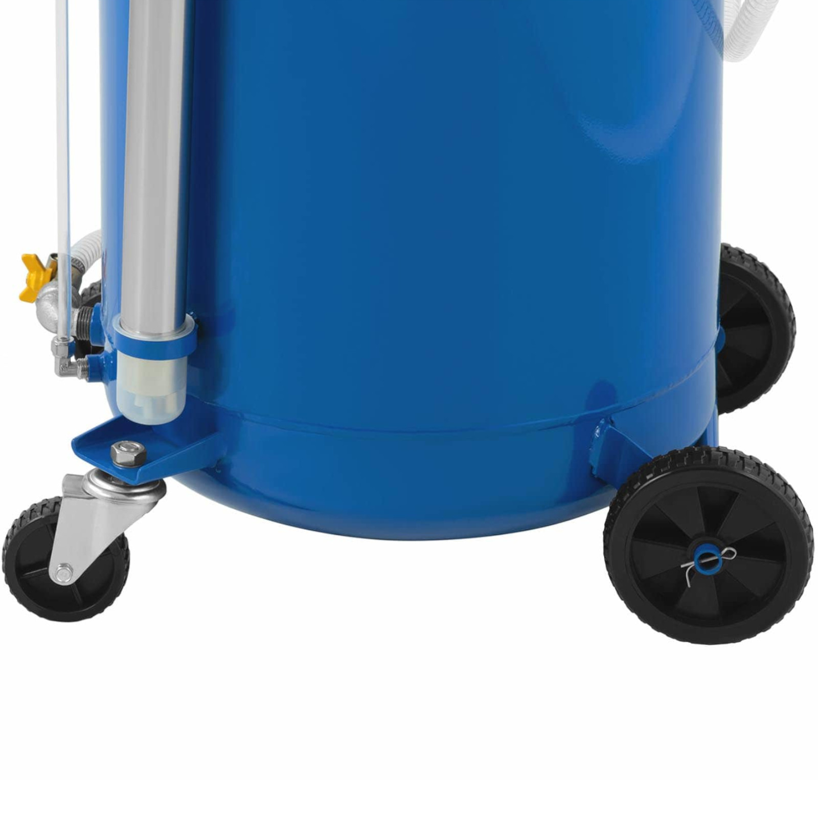 W zestawie znajduje się zlewarka do oleju, zbiornik z zaworem bezpieczeństwa, miska 10 l oraz niezbędne akcesoria, takie jak taśma uszczelniająca, koła, rura stalowa, manometr podciśnienia i instrukcja obsługi.