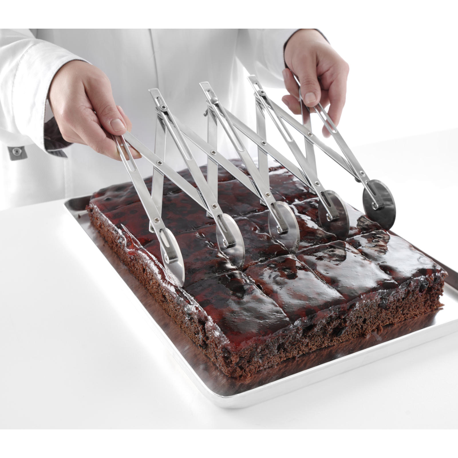 Regulowany znacznik do ciasta marki Hendi to doskonałe akcesorium dla profesjonalnych cukierni i piekarni. Ułatwia precyzyjne krojenie ciast oraz tortów, a także wyznaczanie linii krojenia. Dzięki niemu, każda porcja będzie idealnie równa.