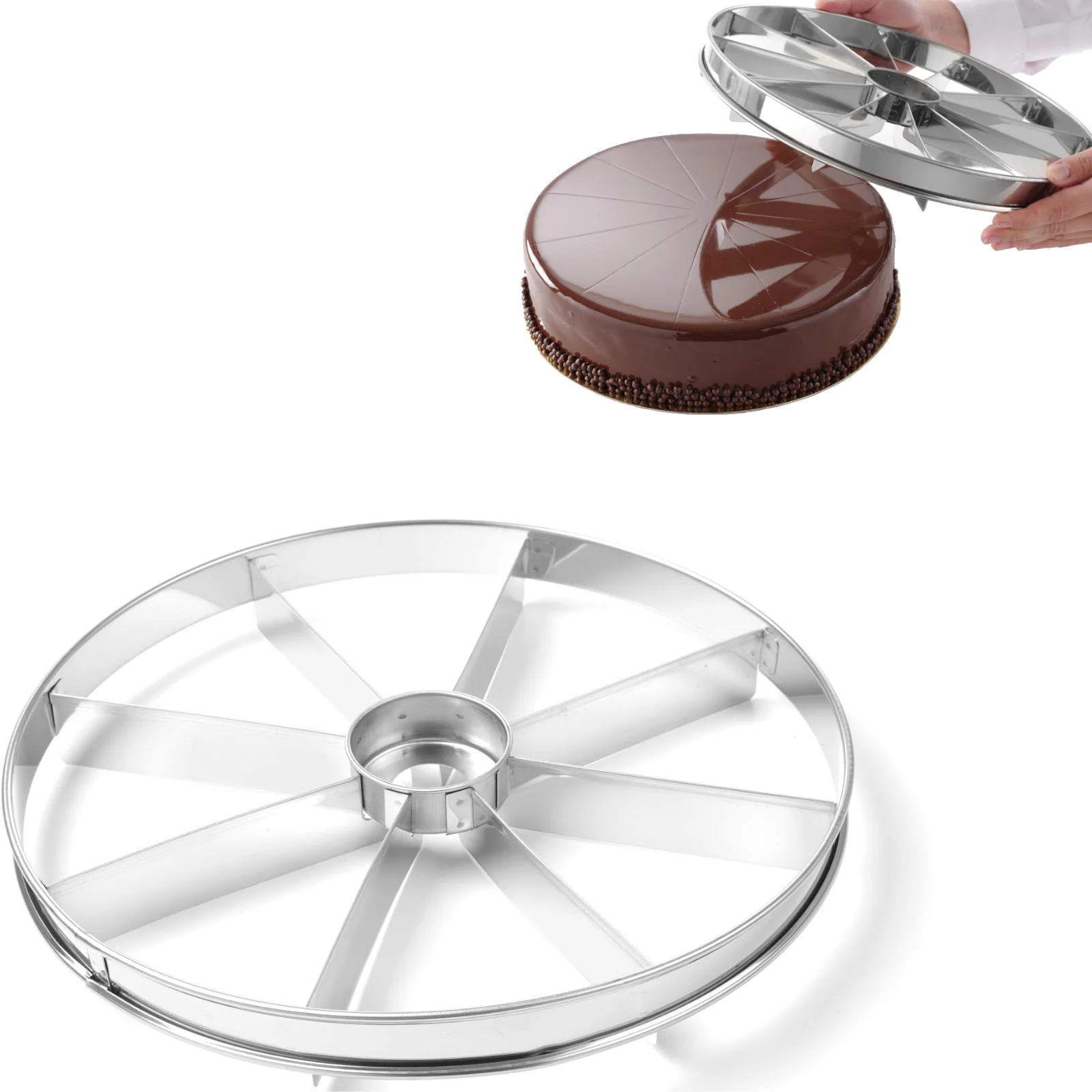 Znacznik do krojenia tortu Hendi to idealne narzędzie dla każdego, kto chce w prosty sposób dzielić ciasta na równe kawałki. Umożliwia podział na 8 równych porcji, co zapewnia estetyczny wygląd serwowanych deserów.