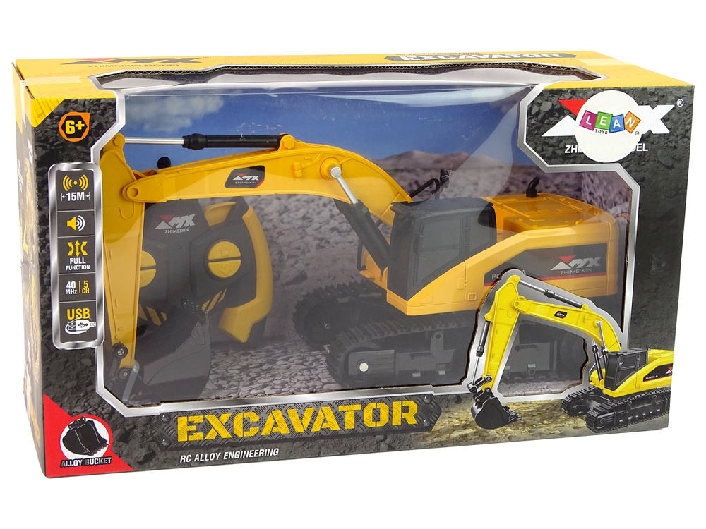 Koparka wykonana jest w żółto-czarnej kolorystyce z metalu. Posiada ona elementy plastikowe oraz gumowe gąsienice. Koparka jest sterowana zdalnie, w prosty sposób, z możliwością kierowania pojazdem na przód/tył i prawo/lewo na odległość 15 metrów od kierującego pojazdem. Koparka ma również funkcję poruszania łyżką.